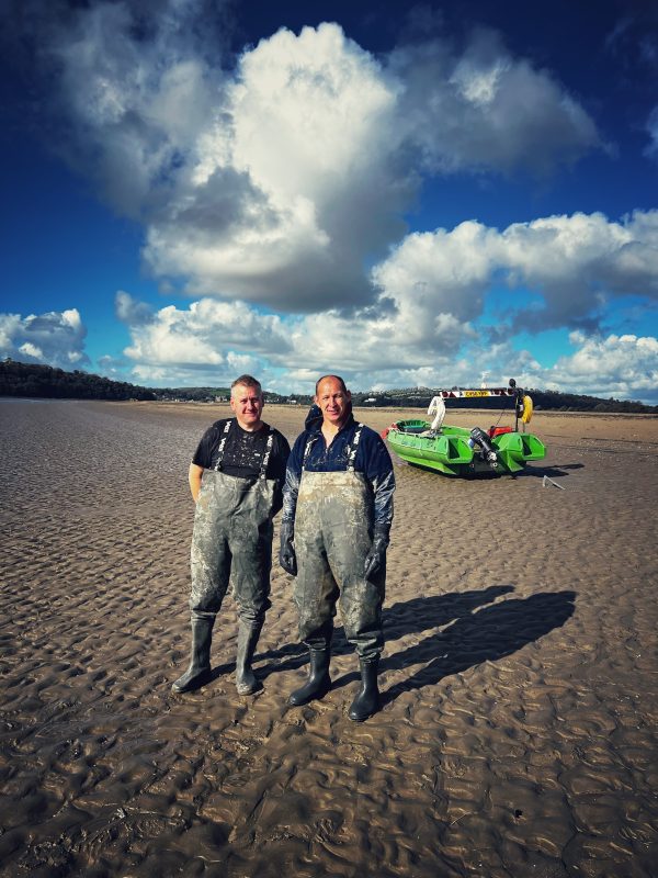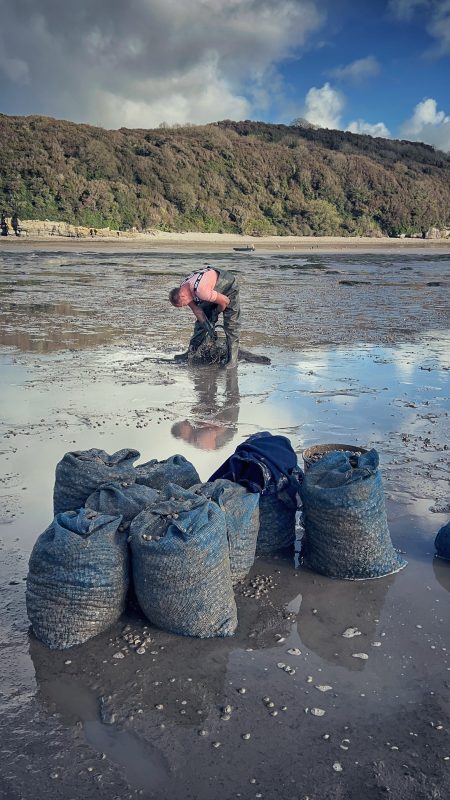 Des de la terra ferma, Andrew observa com el riu Gwendraeth es fon amb dos rius més, alimentant les aigües que donen origen a les exquisides escopinyes que són la joia de la regió. La seva connexió amb aquest treball es remunta als dies d’adolescència, quan a l’edat de 14 anys es va iniciar a l’art de mariscar.